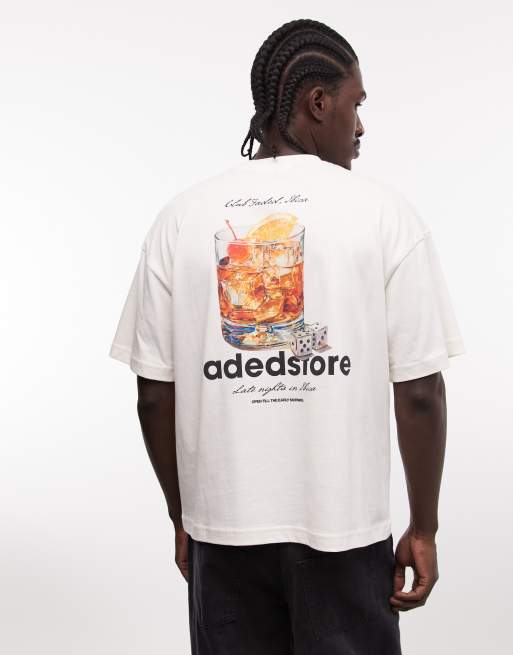 Faded Store logo t-shirt with old fashioned back print in chalk