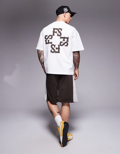Faded Store monogram back print t-shirt in cream