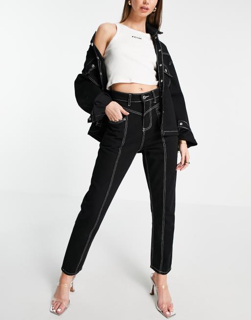 Fae balloon leg western jeans with contrast stitching in black