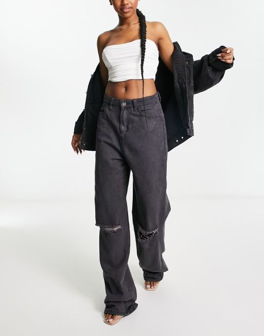 Fae low waist wide leg jeans in washed black