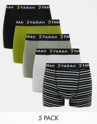 Farah 5 pack boxers in black, khaki marl, grey marl, moss green and multi stripe