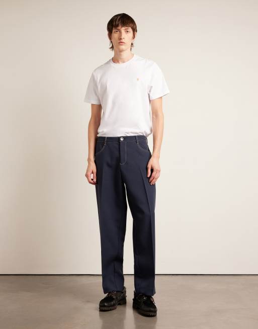 Farah Archive collection contrast stitch tailored logan trousers in navy