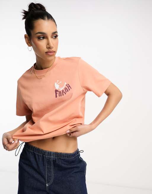 Farah Craig boyfriend fit t-shirt in orange mandarin with check print