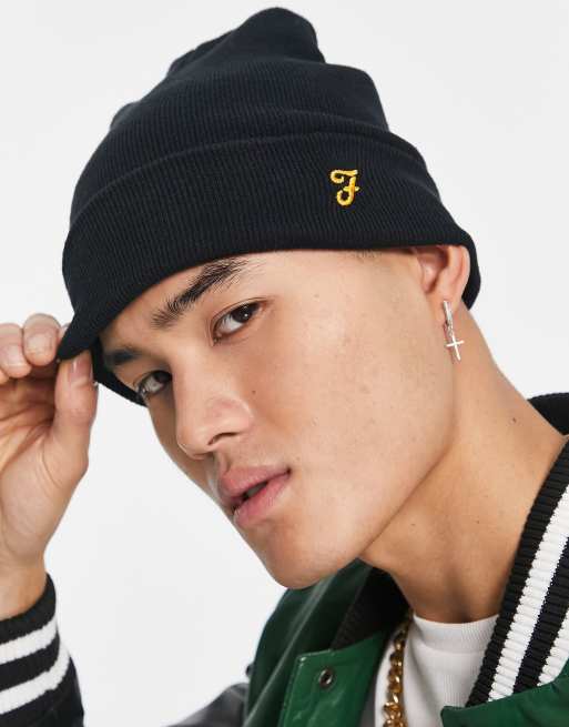Farah logo beanie hat in black