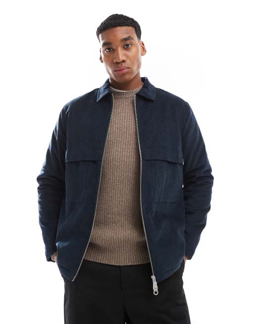 Farah schultz cord overshirt in navy with quilted lining