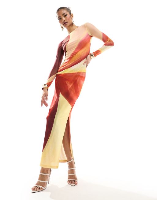 Farai London Aphrodite mesh maxi dress in red and cream flower