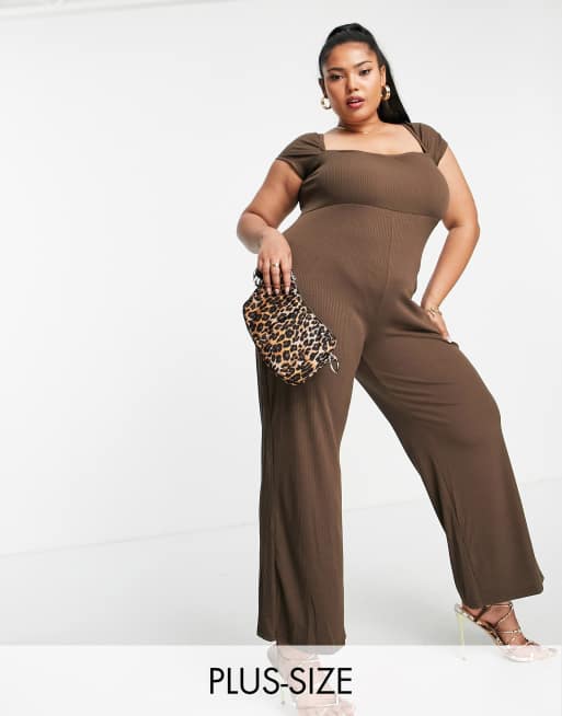 Fashion Union Plus wide leg ribbed jumpsuit with sweetheart neckline
