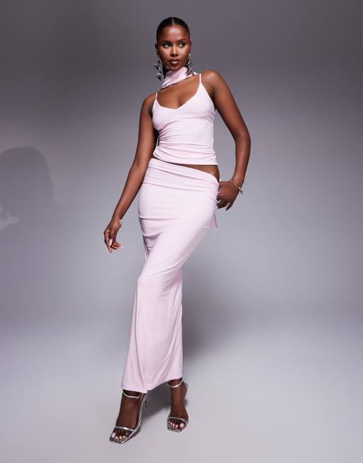 Fashionkilla double sculpted slinky column maxi skirt co-ord in pink