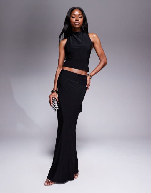 Fashionkilla double sculpted slinky maxi skirt co-ord in black