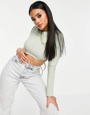Fashionkilla seam detail rib top in sage