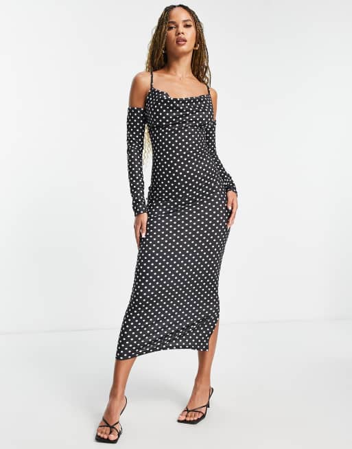 Femme Luxe long sleeve strappy back midi dress in black and white spot print