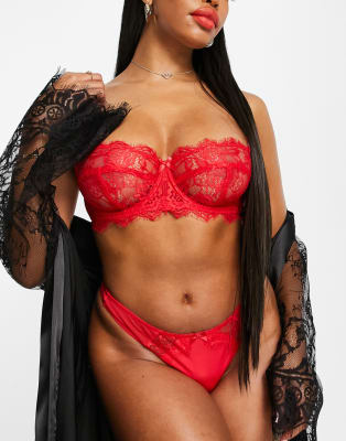 Figleaves Pulse fuller bust eyelash lace lingerie set in red