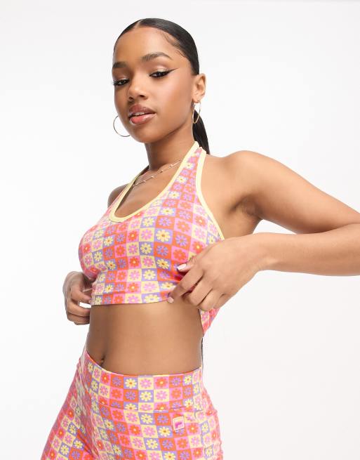 Fila halter top in flower check pattern