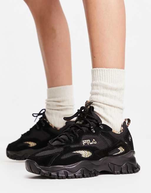Fila Ray Tracer trainers in black and leopard print