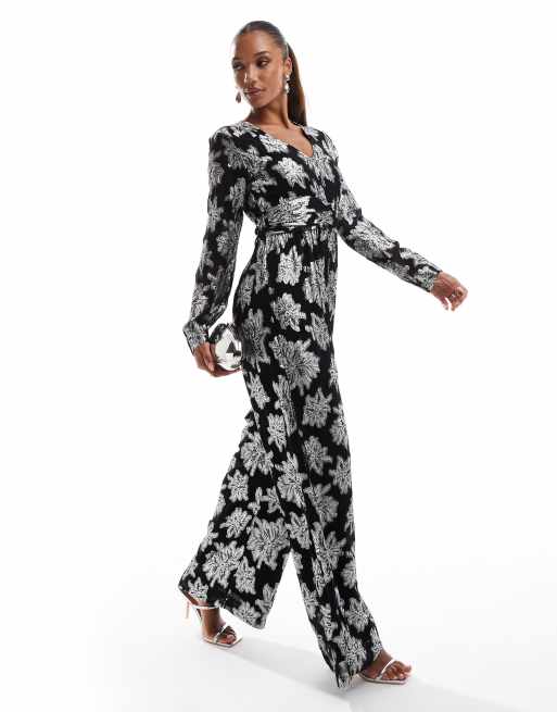 Finding Friday Metallic flower long sleeve jumpsuit in silver