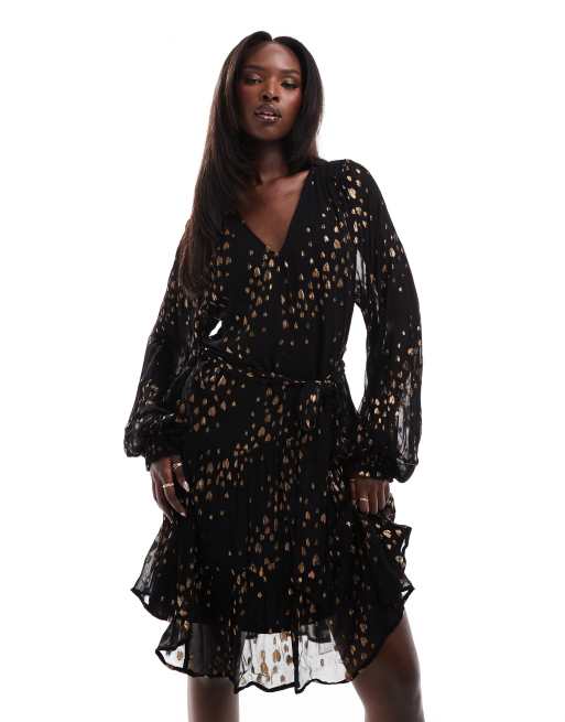 Finding Friday Metallic jacquard knee length dress in bronze