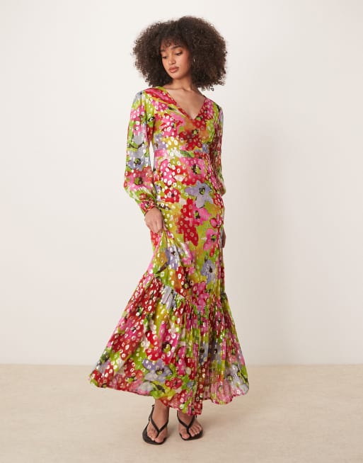 Finding Friday Metallic printed balloon sleeve maxi dress in floral
