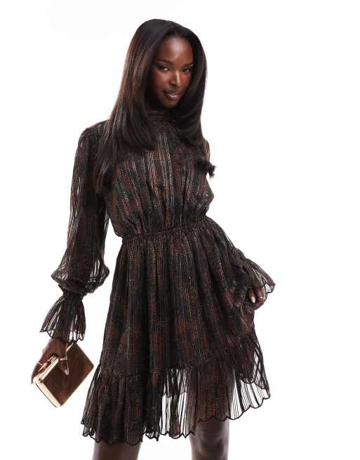 Finding Friday Printed metallic open back mini dress in multi