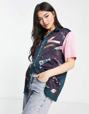 Fiorucci logo bowling shirt with pink contrast sleeves