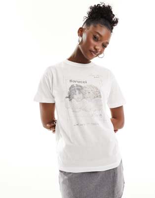 Fiorucci washed distressed fitted t-shirt with angel postcard print in white