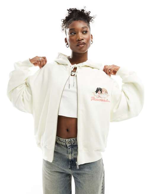 Fiorucci zip up relaxed hoodie with angel logo in cream