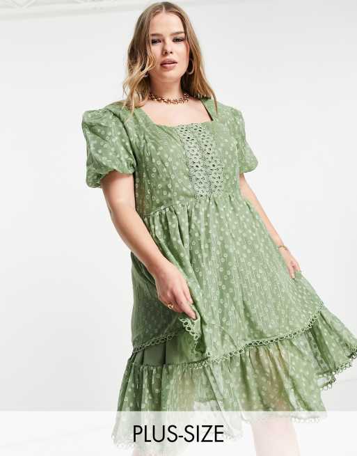 Lovedrobe Luxe midi dress with frill skirt in sage green