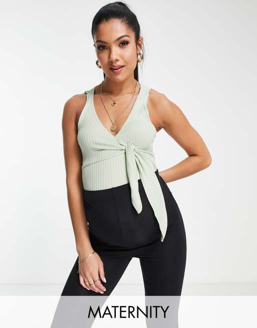 Flounce London Maternity sleeveless ballet wrap ribbed body in pastel green
