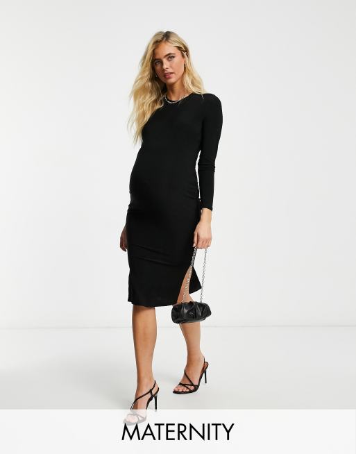 Flounce Maternity basic jersey midi dress with long sleeve in black