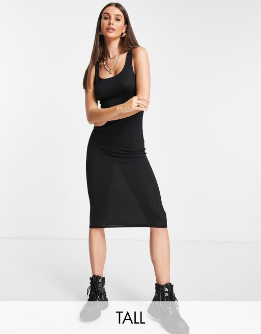 Flounce London Tall ribbed midi dress in black