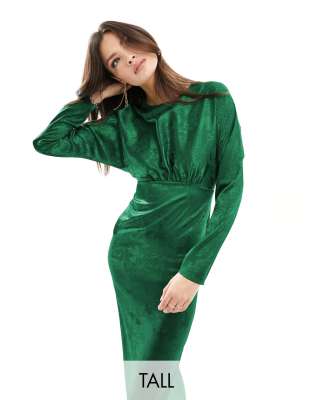 Flounce London Tall satin maxi dress with kimono sleeve in emerald green
