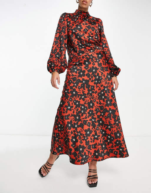 Flounce London satin bias cut maxi skirt in silhouette floral co-ord