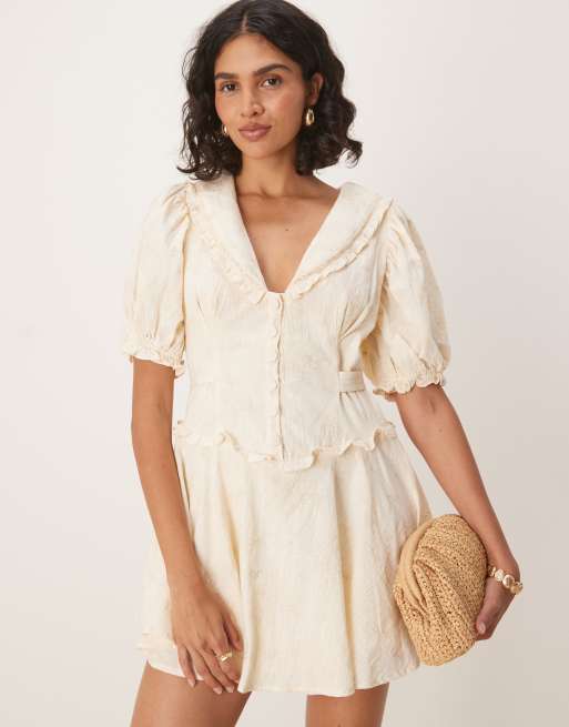 For Love & Lemons Gigi puff sleeve ruffle mini dress in cream