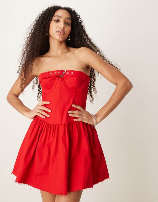 For Love & Lemons Lipstick denim mini dress in red