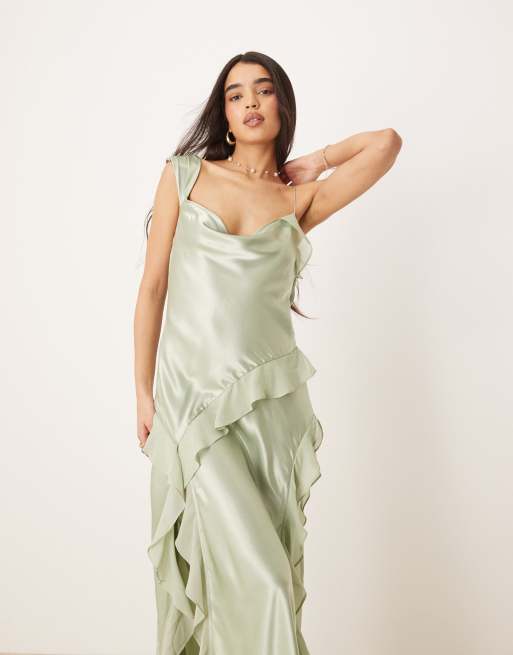 For Love & Lemons Sawyer maxi dress with ruffle detail in desert sage