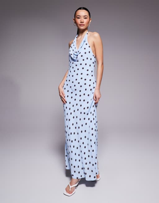 Forever New Petite cowl neck maxi dress in blue polka dot