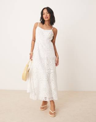 Forever New Petite embroidered broderie midaxi dress in porcelain