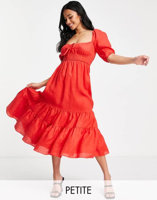 Forever New Petite puff sleeve tiered midi dress in red
