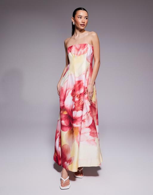 Forever New Petite strapless midaxi dress in pink floral