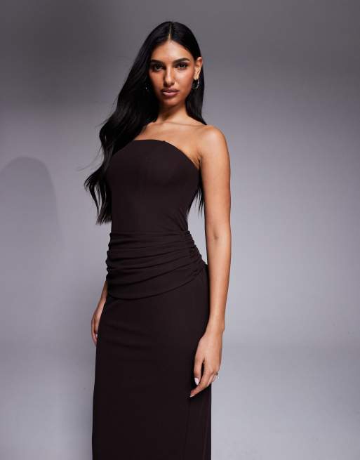 Forever New bandeau draped detail maxi dress in chocolate brown