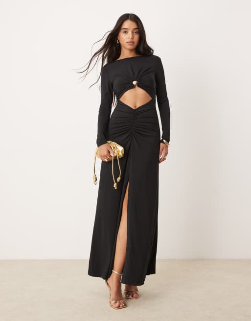 Forever New long sleeve cut-out maxi dress in black