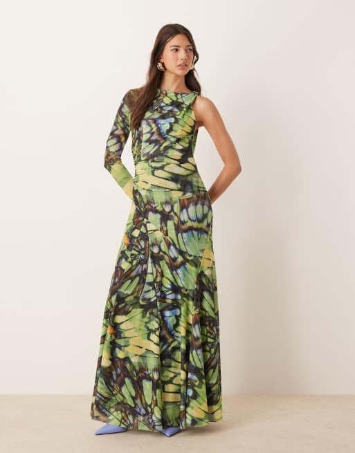 Forever New one sleeve maxi dress in butterfly print