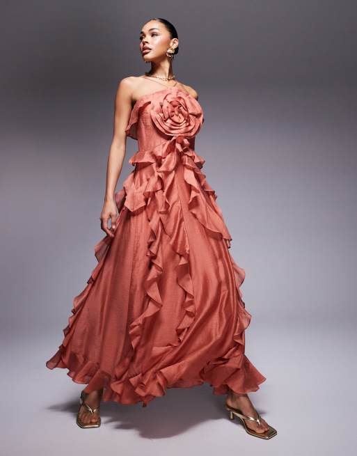Forever New rosette maxi dress in burnt red