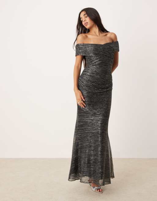 Forever New ruched metallic plisse midaxi dress in charcoal