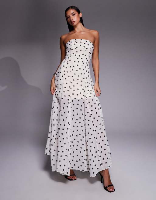 Forever New strapless sheer maxi dress in white polka dot