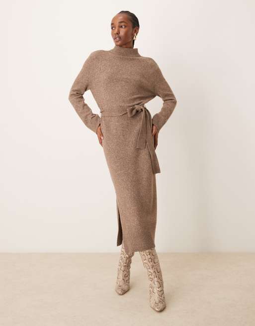 Forever New tie waist knitted midi dress in hazelnut