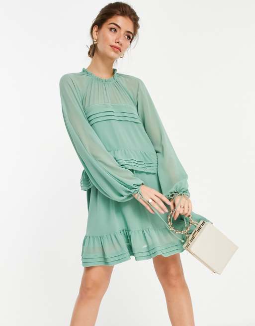 Forever New tiered lantern sleeve mini dress in sage green