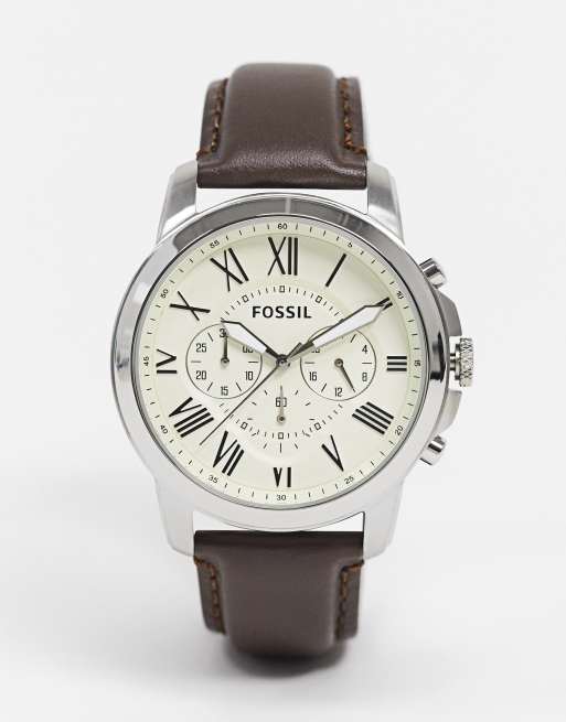 Fossil FS4735 Grant brown leather strap chronograph watch