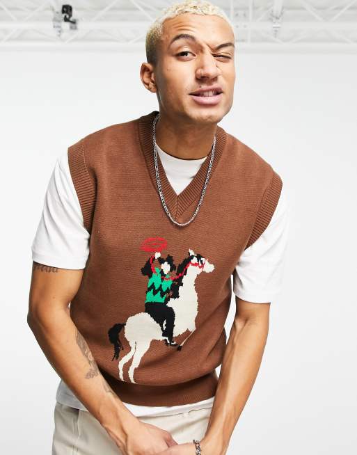 2-Minds - Pull sans manches d'ensemble à motif rodéo cheval - Marron