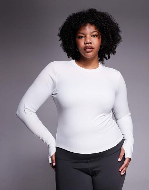 4505 Curve - Icon - T-shirt de yoga effet rétréci à manches longues en tissu doux - Blanc