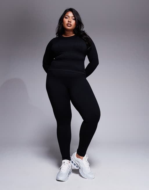 4505 Curve - Icon - Top côtelé sans coutures à manches longues - Noir